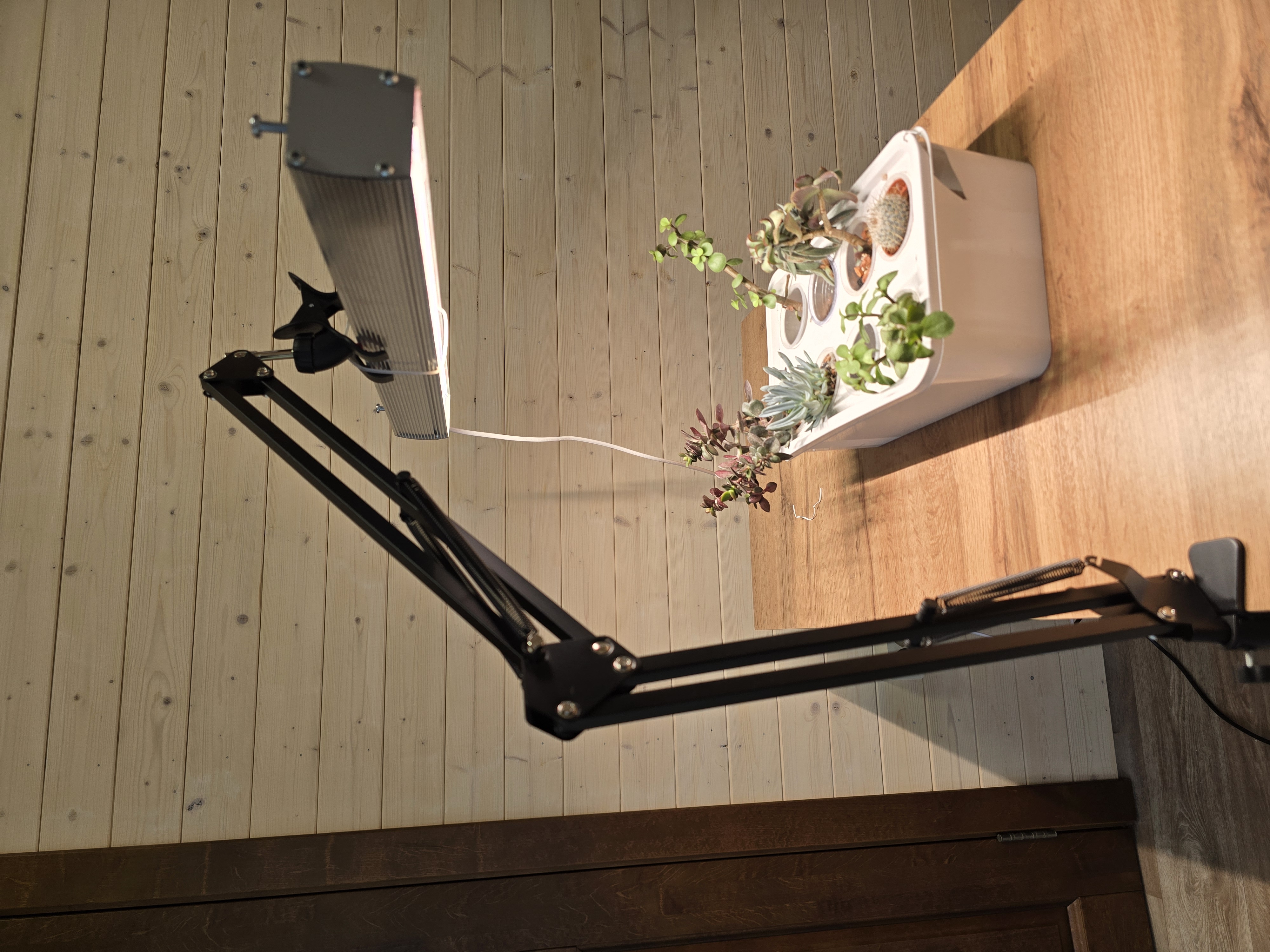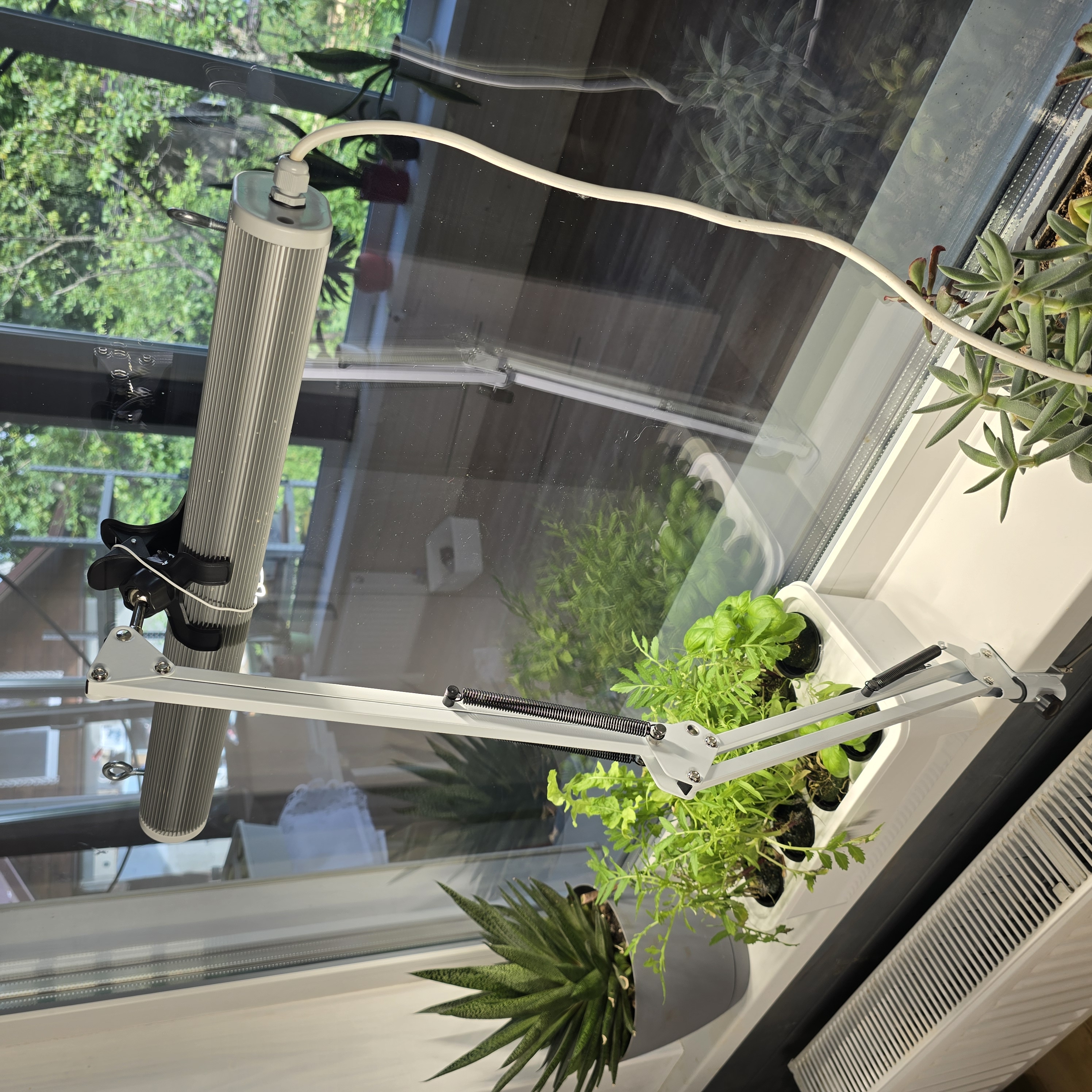 Держатель фитолампы имеет максимальную высоту - 77 см от стола или другой поверхности до держателя. Крепление в виде прищепки комфортно фиксирует фитолампу шириной до 10 см, а резиновые вставки предотвращают деформацию фитосветильника.